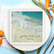 Das hübsche Tropical Beach Wedding Paper Napkins wird ein großartiger Akzent für Ihre Insel Ziel Party, Brautparty oder Heirat Empfang. Diese speziellen Tropen Thema Hochzeit Einweg-Servietten zeigen ein Naturfoto eines türkisblauen Ozeans und einen Sandstrand mit einer weißen Palme und aquamarinen Wirbel an der Ecke.
