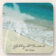 Personalisieren Sie das hübsche Tropical Beach Wedding Cork Untersetzer Set, um ein einzigartiges Geschenk für die frisch vermählten Braut und Bräutigam oder ihre Trauzeugen und Brautmädchen zu schaffen. Dieses Set zum Thema Hochzeitskork-Untersetzer bietet ein landschaftliches Naturfoto des türkisfarbenen oder aquablauen Ozeans an der weißen Sandküste mit Palmen und aquamarinem, wirbelfarbenem Design. Ideal für den Tisch Ihres lässigen Inselziels oder tropisches Party-Thema am Meer.