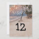 Vintage Tischnummern in der Hochzeit in Urlaubsort mit romantischen Sonnenuntergang, tropischen Stranden mit üppigen Palmen, Lichtern aus Streichholz und einer leicht zu personalisierenden Tischnummer.