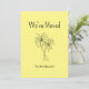 Wir haben die Ankündigung "Neue Zuhause" mit tropischen Palmen auf gelbem Hintergrund gezeichnet. Schwarze Typografie Schriften können mit Ihren Informationen angepasst werden. Ideal, um sich in Ihrer neuen Zuhause am Strand niederzulassen.