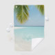 Himmlische Aussicht auf ein tropisches Strandparadies mit türkisfarbenem Meer und Palmenblättern, die über atemberaubenden weißen Sand ragen. Genießen Sie diese unberührte Traumszene auf Ihrem Golf-Handtuch jedes Mal, wenn Sie sich auf dem Golfplatz in ein wenig "me time" entspannen. Einfach mit Ihrem eigenen Monogramm-Namen und Initial in dekorativer Schriftart-Typografie anpassen - oder Text löschen, wenn Sie es vorziehen.