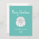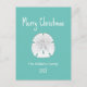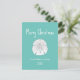 Tropical Beach Weihnachten aquamarin grüne Postkarte, mit einem Sand-Dollar-und weiße Typografie-Design, Mit anpassbaren Buchstaben, können Sie Ihre eigenen Informationen hinzufügen. Ideal, um den Lieben in dieser Ferienzeit gute Wünsche zu schicken.