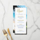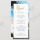 Tropischer Strand und Meer Küste Moderne elegante Hochzeitsmenü-Design. Ein maßgeschneidertes Wedding Menu Design mit Ihren Informationen leicht zu ändern, um Ihre Hochzeitsfeier zu personalisieren. Persönliche Hochzeit stationär von Just Fine Designs.