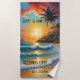 Badetuch mit einem Bild eines Sonnenuntergangs auf einem tropischen Strand mit einem (optionalen) Apfel. Ideal für einen Lehrer und leicht anpassbar für jeden anderen!
