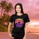 Cool passende Familienurlaub Damenduschen für eine Inselkreuzfahrt. Die Palmen vor einem hübsch rosa Sonnenuntergang am Strand sind wunderschön. Perfekte Schwarze T-Shirts für Ihren Sommerurlaub.