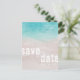Tropical Beach Wedding Watercolor Save the Date Postcard. Eine einfache Aquarellfarbe, die einen tropischen Strand mit rosa-weißem Sand und türkisfarbenem Wasser darstellt, bildet den Hintergrund für diese stilvolle und moderne Hochzeitsankündigung. Die kühne, bedrückte Typografie verleiht dem Design ein edles Aussehen. Fügen Sie Ihre Hochzeitsdetails und weitere Informationen zur Postkarte hinzu und senden Sie sie an Ihre Familie und Freunde.