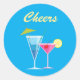 Dieser farbenfrohe blaue Aufkleber ist mit tropischen Getränken und dem Wort "Cheers" versehen, was ihn perfekt für die Dekoration von Hochzeitsfavoriten macht. Sollten Sie weitere Informationen benötigen, kontaktieren Sie uns bitte unter prettyfancyinvites@gmail.com .
