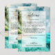These beautiful cards are designed to welcome your guests and special members of your wedding party. The beautiful design features a tropical beach watercolor with pristine sands, palm trees, and turquoise waters. The front has space for a welcome message, and on the back is the schedule or itinerary. Great addition to a wedding welcome bag, and a wonderful way to thank your guests for celebrating with you!