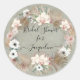 Das Tropical Beach White Floral Sage Greenery Foliage Brautparty Klassischer Rundaufkleber für Umschlag Aufkleber, Geschenktüten oder andere Brautparty Dekoration. Aquarellkunst aus eleganten Orchideen, khaki-braunes Palmenblättern, boho-artigen getrockneten tropischen Blätter und gedämpftem Salbei-Farn-Kranz. Ursprünglich in Aquarellfarbe handgestrichen und auf diesen hochwertigen Aufklebern bedruckt. Copyright, Audrey Jeanne Roberts.