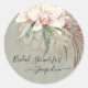 Das Tropical Beach White Orchid Sage Blumenblättern Klassischer Rundaufkleber für Umschlag Aufkleber, Geschenktüten oder andere Brautparty-Deko-Anwendungen. Wasserfarben, bemalt von Audrey Jeanne Roberts, einer international anerkannten Künstlerin und Produktdesignerin. Elegante orchide Blume und tropisches Dschungelwäldchen in gedämpften warmen, erdgetönten tropischen Wüstenfarben sind ein Fest für die Augen. Copyright, Audrey Jeanne Roberts.