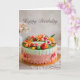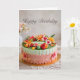 This beautiful birthday card features a pastel tropical cake adorned with vibrant hibiscus flowers, lush greenery, and colorful fruit accents. The soft green and pink tones combined with intricate piping details create a fresh, cheerful design that feels both elegant and festive—perfect for celebrating a special birthday with a touch of island-inspired charm.