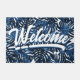 Tropical Blätter Navy Blue White Script Willkommen Fußmatte