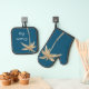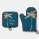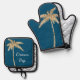 Tropical Blue Gold Glitzer Palm Tree Ofenhandschuh & Topflappen-Set