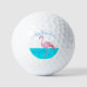 Tropical Blue Monogram Name Black Pink Flamingo Golf Balls