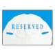 Vergnügen reserviert Sitzkarte für eine tropische thematische Hochzeit oder Veranstaltung. Ein großer weißer Sand-Dollar hält den Schattentext in hellen, tropisch blauen Farben mit einem passenden blauen Hintergrund. Das Design befindet sich auf einer Seite dieser Flachkarte.
