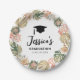 Personalisierte Abschluss Papier Teller mit diesen tropischen Tellern. Er ist mit einem blumengeschmückten Wasserschrei aus boho getrockneten Palmen verlassen. Einfache Personalisierung durch Hinzufügen von Namen, Datum und Ereignis. Es ist perfekt für Abschluss-Läden.