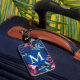 Bright bold colored tropical leaf patterned monogrammed luggage tag.