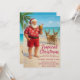 Celebrate the holidays island-style with this Tropical Christmas Beach Party Invitation! Featuring a realistic Santa in a festive Hawaiian shirt holding a piña colada, standing on a sunny beach with two reindeer by the shoreline, this invite brings warm-weather holiday vibes to any celebration. The set includes a matching back design with a soft, faint writing overlay and tropical scenery for a polished, professional look.