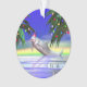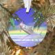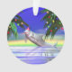 Ornament mit meinem Original-Kunstwerk eines Delfins, der Weihnachten in den Tropen feiert, indem er einen roten Hut trägt und einen Zuckerrohr zwischen dekorierten Palmen hält.