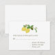 Zeitgenössische und auffällige Hochzeitskarte RSVP mit tropischem Thema. Enthält eine luftige Abbildung mit Zitronen, die an einem Zweig hängen, und ein paar Blätter in mehreren grünen Farbtönen. Diese Karte ist ideal für eine tropische Hochzeit oder eine Sommerhochzeit. Das Design ist elegant, aber frisch und hell. Fügen Sie Ihre eigene Formulierung hinzu. com