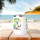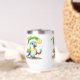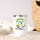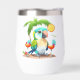 A Cute Stainless Steel Wine Tumbler Designed With A Tropical Parrot With Palm Tree And Tropical Drinks