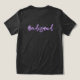 Bachelorette t-shirts for the ladies of the wedding party. Black, short sleeve tee shown, with lavender name, bright pink party title and a tropical design. Include the title of the woman on the back, "Bridesmaid", etc., or remove the sample wording to order shirts with nothing on the back. A collection of yummy cocktails sit amongst hibiscus, anthurium and green leaves. A perfect design for a cocktail party to celebrate the bride. Choose any t-shirt color and style.