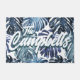 Tropical Family Name Blue White Palm Blätter Fußmatte