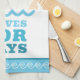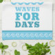 Celebrate summer and lazy days at the shore with this customizable beach theme kitchen towel. Featuring a charming illustration of a tropical fish swimming among ocean waves and customizable text that says, "Waves for Days," this playful design includes three editable text placeholders that are perfect for adding your family name or a fun summer phrase. Whether you're gifting this tea towel to a new homeowner or accessorizing your own beach house, this coastal design will add tropical beach vibes to any occasion.
