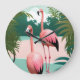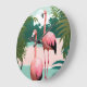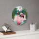 Eine ruhige Szene aus zwei rosa Flamingos, stehend von einer üppigen tropischen Küste, umgeben von blühendem Grün und sanften Pastelltönen. Ideal, um jedem Raum eine Touch von exotischer Schönheit hinzuzufügen.