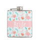 Auf einem wunderschönen blauen Hintergrund mit rosa Flamingos stehen auch rosa und blaue Blumen und Federn, die dieses Design schmücken. In der Mitte ist "Bride" auf einem rosa Hintergrund geschrieben. Kaufen Sie noch heute Ihre Bridal Flasche! Hintergrundbild erstellt von: AMBillustrations http://www.etsy.com/shop/AMBillustrations/