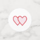 Eleganter tropischer Blumenkopf und Harzen auf weißen Hochzeitstisch Confetti. Herz und Herz-Blume in Rosa und Weiß. Bereit, für Hochzeiten, Jubiläen und vieles mehr personalisiert zu sein.