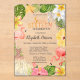 Tropical flowers with palm leaves, and flamingos. This invitation is easily customized for your event by simply adding your details.