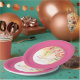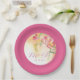 Heiß rosa Freesia Stiel ist wassergefärbt auf einem tropischen Sonnenuntergang Waschen von Textur. Eine prachtvolle Typografie personalisiert elegant mit den Initialen des Paares und dem Hochzeitstag.