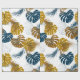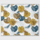 Tropical Gold and Navy Blue Palm Blätter Muster Geschenkpapier
