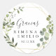 Dieses tropisch grüne spanische Dankeschön an die Gastgeschenk Hochzeit klassischen Rundaufkleber ist perfekt für eine moderne Hochzeit. Das Design besticht durch handbemalte grüne Blätter, die einen goldenen geometrischen Rahmen schmücken. Machen Sie den Aufkleber mit Ihren eigenen Namen, der Veranstaltung (falls zutreffend) und dem Datum versehen. Diese Aufkleber können einen Hochzeitsempfang, Brautparty oder jede Veranstaltung ergänzen!