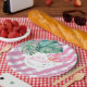Diese tropische Kochplatte aus Gingham ist Teil meiner tropischen Florida Kollektion. Meine Baby Dusche Party Suite im Hinterhof verfügt über eine Nachbildung meiner original Aquarellfarbe Rosa Flamingo und Monstera Palm Blätter auf einem rosa Schachbrett. Personalisieren Sie sie mit dem Mama-to-be-Namen und dem Duschdatum. Ideal für Paare Grillen Kinderdusche, Babydusche parken, Röstbraten oder Partys im Hinterhof. Weitere Designs von Victoria grigaliunas finden Sie unter www.zazzle.com/dotellabelle