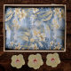 This floral hibiscus tissue paper features tropical palm trees, tropical flowers, and a blue ocean background. It's reminiscent of classic Hawaii or Tahiti, almost like a tropical shirt pattern. This nostalgic design might remind you of tropical beaches and relaxing waves, and would make a nice accent for gift wrapping or a focal point of a tropical decoupage project.