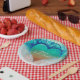 Teller des Tropical Heart Blue Grunge Beach Party. Anpassen mit jedem Text. Matching-Elemente sind verfügbar.