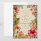 Celebrate your wedding day with timeless tropical elegance. This romantic design features lush hibiscus blooms, soft palm leaves, and painterly botanical details layered over a warm, vintage-inspired background. The refined typography and airy island palette create a sophisticated destination wedding feel that’s perfect for coastal venues, tropical resorts, or summer celebrations.