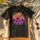 Cool passende Familienurlaub-Tri-Mix-T - Shirt für eine Inselkreuzfahrt. Die Palmen vor einem hübsch rosa Sonnenuntergang am Strand sind wunderschön. Perfekte Schwarze T-Shirts für Ihren Sommerurlaub.