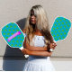 Erinnern Tage von Gidget, surfen am Strand. Schlagen Sie in diesem Sommer auf die Plätze mit diesem sonnengefüllten Karibik-Palmen-Pickleball-Paddel. Ein Ort auf einer Seite für Personalisierung mit Ihrem eigenen Namen oder Nachricht, oder entfernen Sie das Banner und Text.