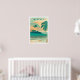 Retro Stil handgemalt Vintage Stil Reiseposter von Maui in Hawaii. Die Aqua-Blues und die Grüntöne sind in sandigen Tönen gehalten und mit Palmen bepflanzt.