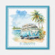 Dieser personalisierte Magnet an der Küste verfügt über einen in Blau und Weiß gehaltenen Retro-van-Bus mit tropischen Palmen. Personalisieren Sie Ihre Auswahl an Namen oder Sondertexten.
