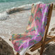 Dieses Badetuch wird nach einem Bad im Meer oder Pool so einladend sein. Tropische Schattierungen eines Sonnenuntergangs auf der Insel sind ein Sommerprodukt. Fügt man eine bunte Palme hinzu, wird sie zum schönsten Akzent im Freien. Farbige Pastelltöne mit weichem Wasser.
