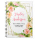 This fun and whimsical notebook features watercolor pink and orange hibiscus flowers and foliage on a gold geometric frame. The text combines handwritten script and serif fonts for a stylish and modern look. It can be personalized with your baby's birth stats, such as name, size, date and time of birth, or if you would like to give it as a shower gift you are able to edit and remove text.