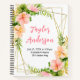 This fun and whimsical notebook features watercolor pink and orange hibiscus flowers and foliage on a gold geometric frame. The text combines handwritten script and serif fonts for a stylish and modern look. It can be personalized with your baby's birth stats, such as name, size, date and time of birth, or if you would like to give it as a shower gift you are able to edit and remove text.