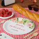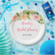 This beautiful and elegant plate features watercolor pink and orange hibiscus flowers and foliage. The text combines handwritten script and serif fonts for a stylish and modern look. This is perfect for a summer tropical bridal shower.