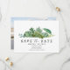 Wedding save the dates in a tropical leaf design to match our coordinating invitation, perfect for your tropical beach destination wedding. Inspired by the lush foliage found in tropical climates, this save-the-date is designed with a variety of leafy motifs that will transport you and your guests to a paradise oasis.