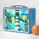 Tropical Lighthouse & Palm Trees Green Blue Aquama Metall Brotdose