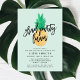 Laden Sie Freunde und Familie zu Ihrem Abschluss-Luau mit Spaß Abschlussfeier lädt ein. Die Einladungen der Graduierungsparty beinhalten eine Ananas in Aquarellfarbe, einen Minzhintergrund, einen trendigen Script-Schriftart, Platzhalter für den eigenen Text und ein fett schwarz-weißes Punktmuster auf der Rückseite der Einladung.